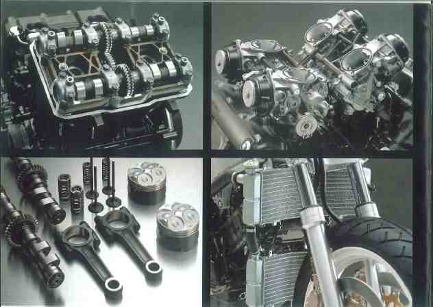 Gesamtmaschine ausschlaggebend ist, wurde ein völlig neuer Zylinderkopf entwickelt, der nicht nur extrm kompakt ist, sondern auch dazu beträgt, den Schwerpunkt des Motors tiefer zu legen und nach vorne zu verlagern. Die